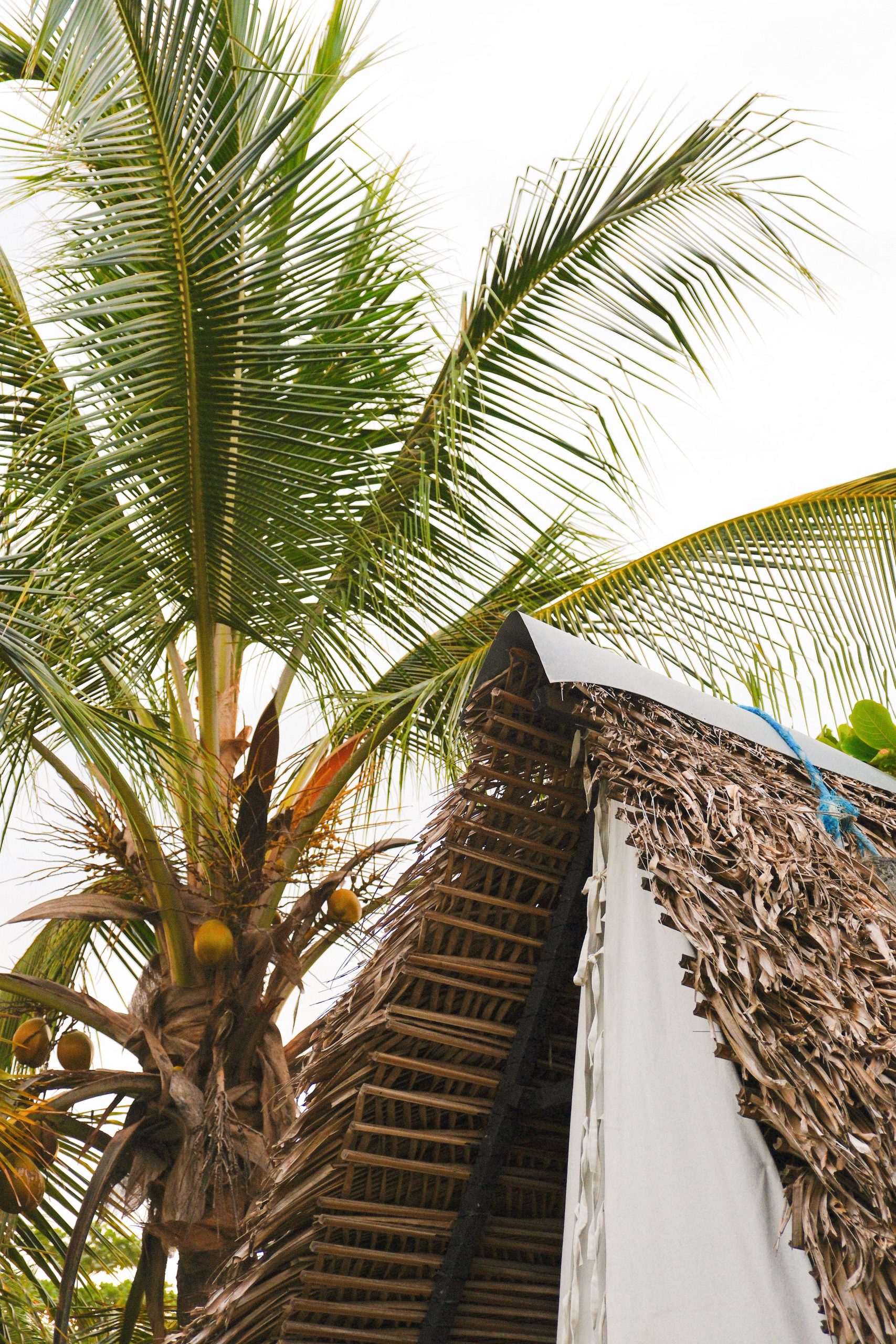 Set right on the beachfront and only meters from the ocean, the hut is built on raised decking and open to the breeze, with a queen-sized bed, soft lighting, and uninterrupted views of the trees and waves. You’ll share a beautiful outdoor shower and bathroom, surrounded by palms, sky, and the soundtrack of the Pacific.