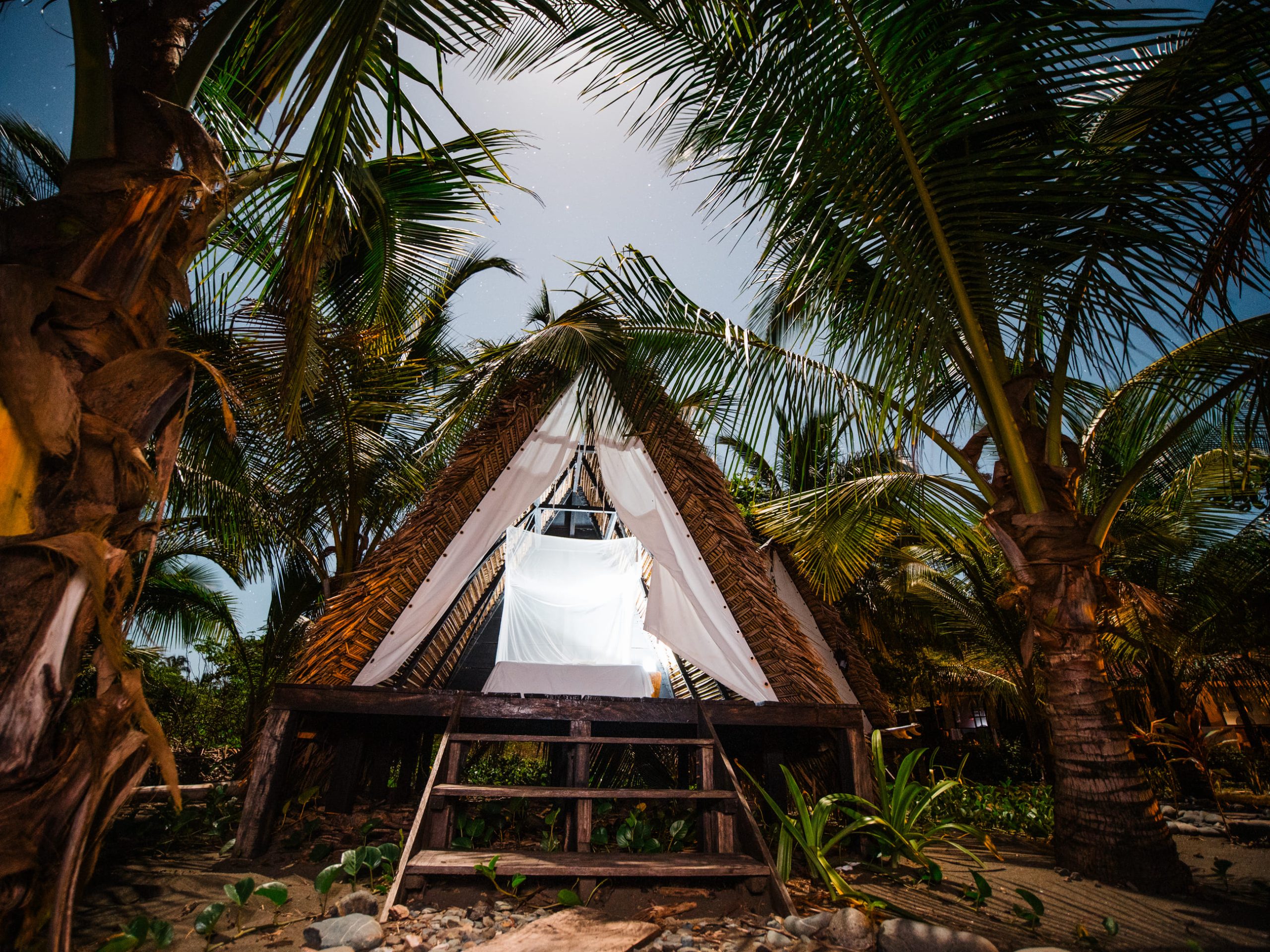 Our most raw and adventurous option—this open-air queen bed hut is made for travelers who want to sleep under the stars, wake with the jungle, and live just steps from the sea.